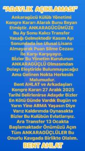 BENT AHLAT ANKARAGÜCÜ SPOR KULÜBÜ BAŞKANLIĞINA ADAYLIĞINI AÇIKLADI